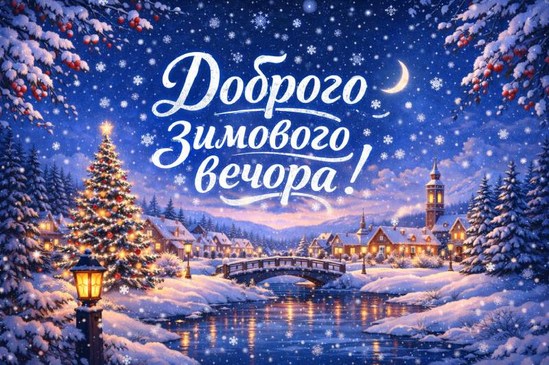 Зимовий вечір має особливу магію. День уже стих, вікна засвітилися жовтим світлом, сніг за вікном повільно падає – або лежить мовчазно, без руху. Саме в такі моменти хочеться написати комусь просте повідомлення: “Доброго зимового вечора”. Без пафосу. Без зайвих слів.