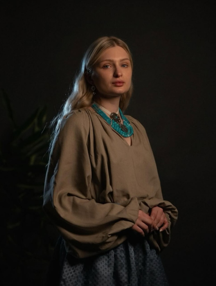 Етнологія стала робочим інструментом. Під брендом “Ладна Ладунка” з’являються аксесуари на основі традиційних елементів – кишеньки, гамани, фартухи, крайки, спідниці. На знайомстві у проєкті Вікторія прийшла в традиційній сорочці та подарувала головному герою вишиту сорочку з орнаментом, пов’язаним із його рідним регіоном. Для неї це не декор, а мова символів, яку вона послідовно підтримує.