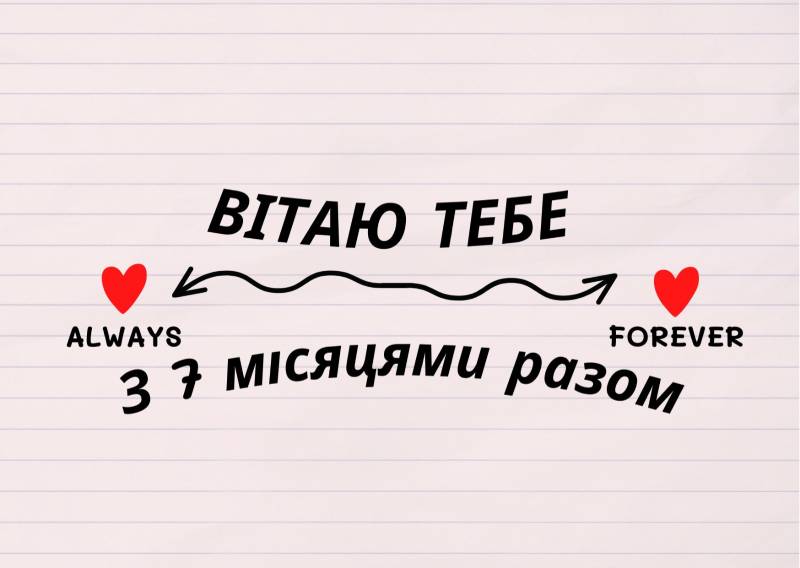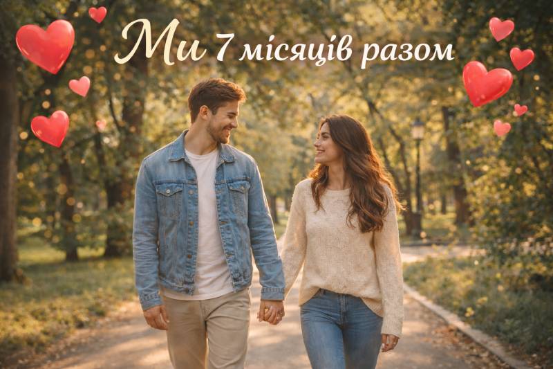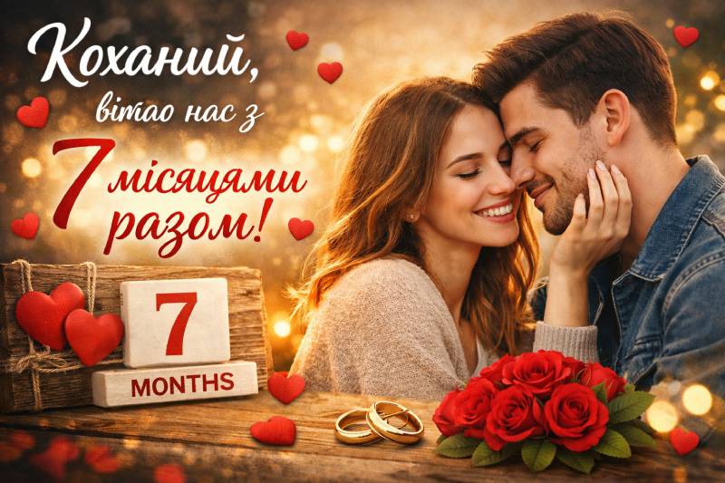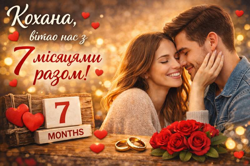 Якщо слів замало, виручають картинки. Напис “7 місяців разом”, спільне фото, мінімалістичний дизайн або ніжна ілюстрація – усе це доповнює привітання й робить його ще теплішим. Особливо в месенджерах або соцмережах.