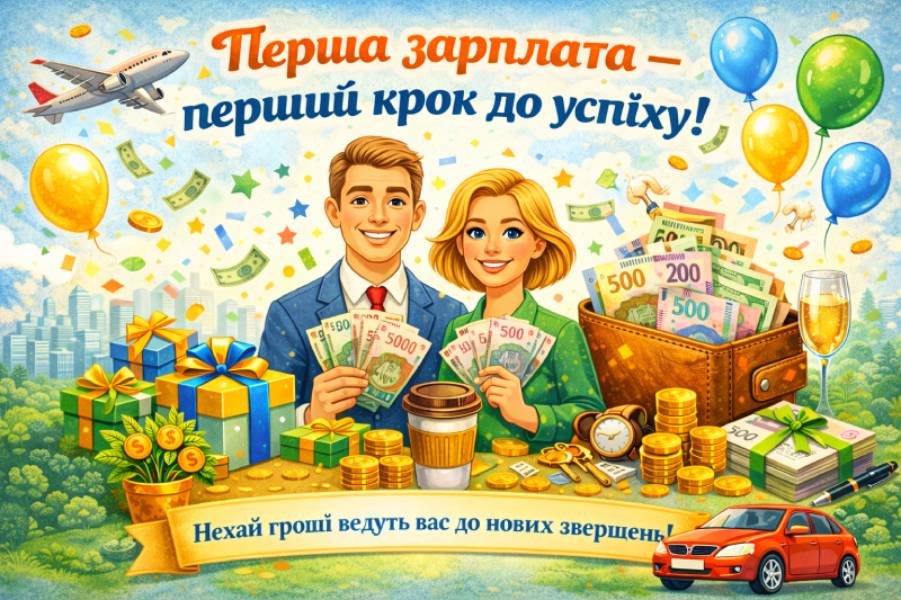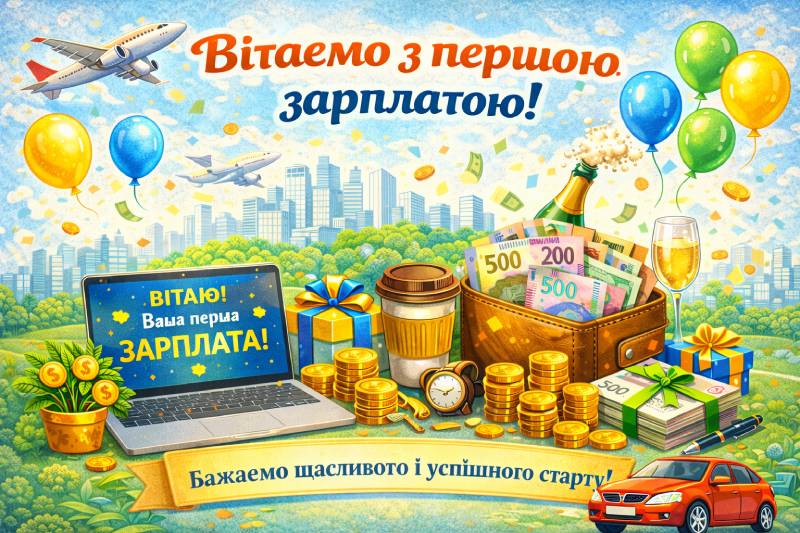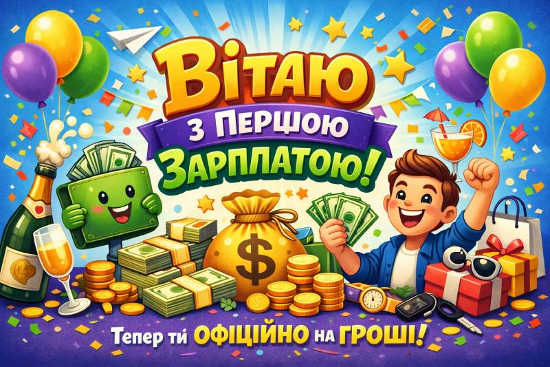 Перша зарплата запам’ятовується надовго. Навіть якщо сума смішна. Навіть якщо витратилася за два дні. Тому прикольна картинка або живе привітання — це дрібниця, але дуже в тему. Чесно? Такі речі гріють більше, ніж гроші. І це факт.