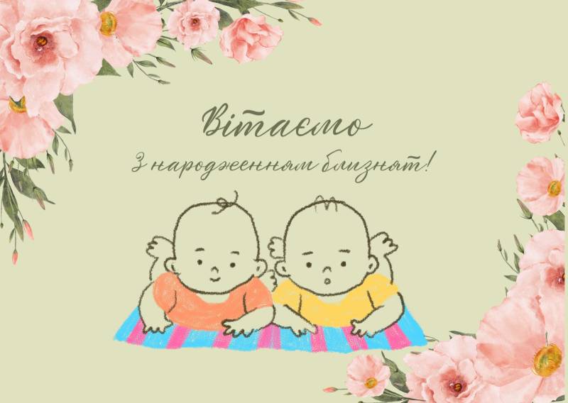 Картинки та вітальні листівки з привітанням з народженням близнят