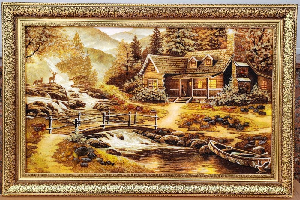 Бурштин вважають каменем з лікувальними властивостями – знімає головний біль, додає енергії. Картина стає як декором, так і талісманом для дому.